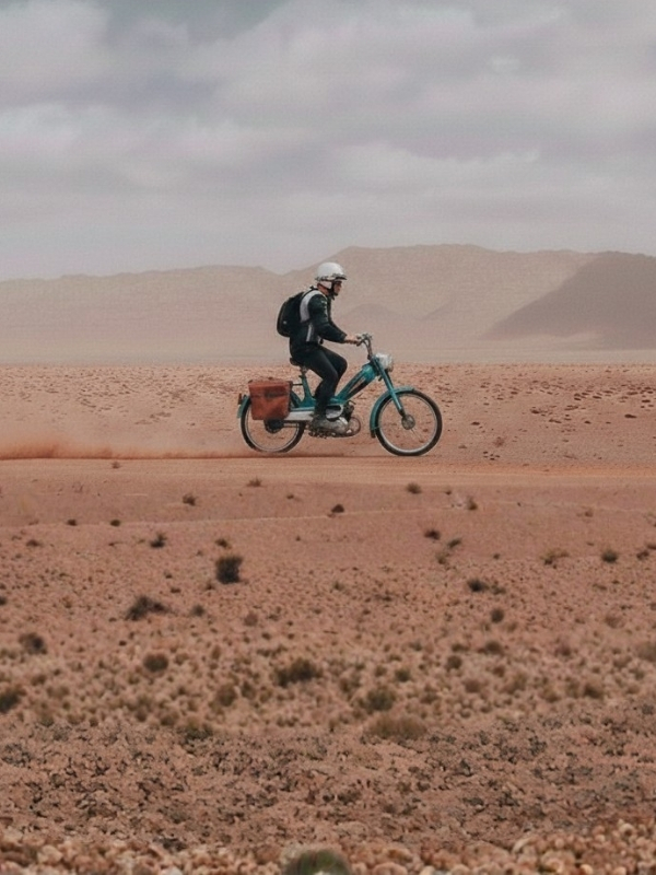 A full‑day fossil hunt with a Classic Motobécane moped—more freedom, more desert, the same way local fossil hunters do it to access unaccessible Spots.